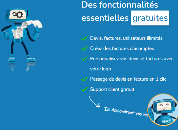 Oui, les fonctions de base (devis, factures, relances) sont gratuites sans limite de temps ni de volume. Seuls les services additionnels de confort ou de pilotage expert sont payants.